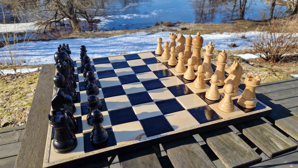 A few years ago, I finished a chessboard and thought I would quickly make the pieces and finish the set. Now, after several years and one epidemic, it is finally completed. Making a single piece is quite easy, and each one took around 2 to 3 hours to make. However, making 32 pieces with all the same types looking identical is really hard. But I am happy that it is finally done. There is a whole series of videos on how I made the set which I can recommend (this video covers most of the things in the blog with nice videography and a cool accent). Here is the first (links to the others be):